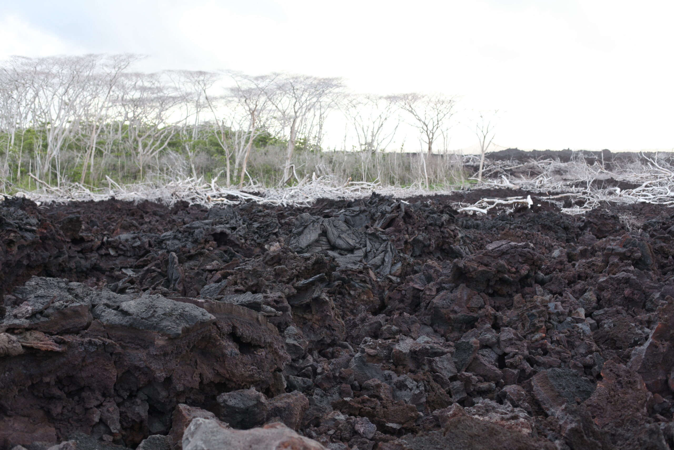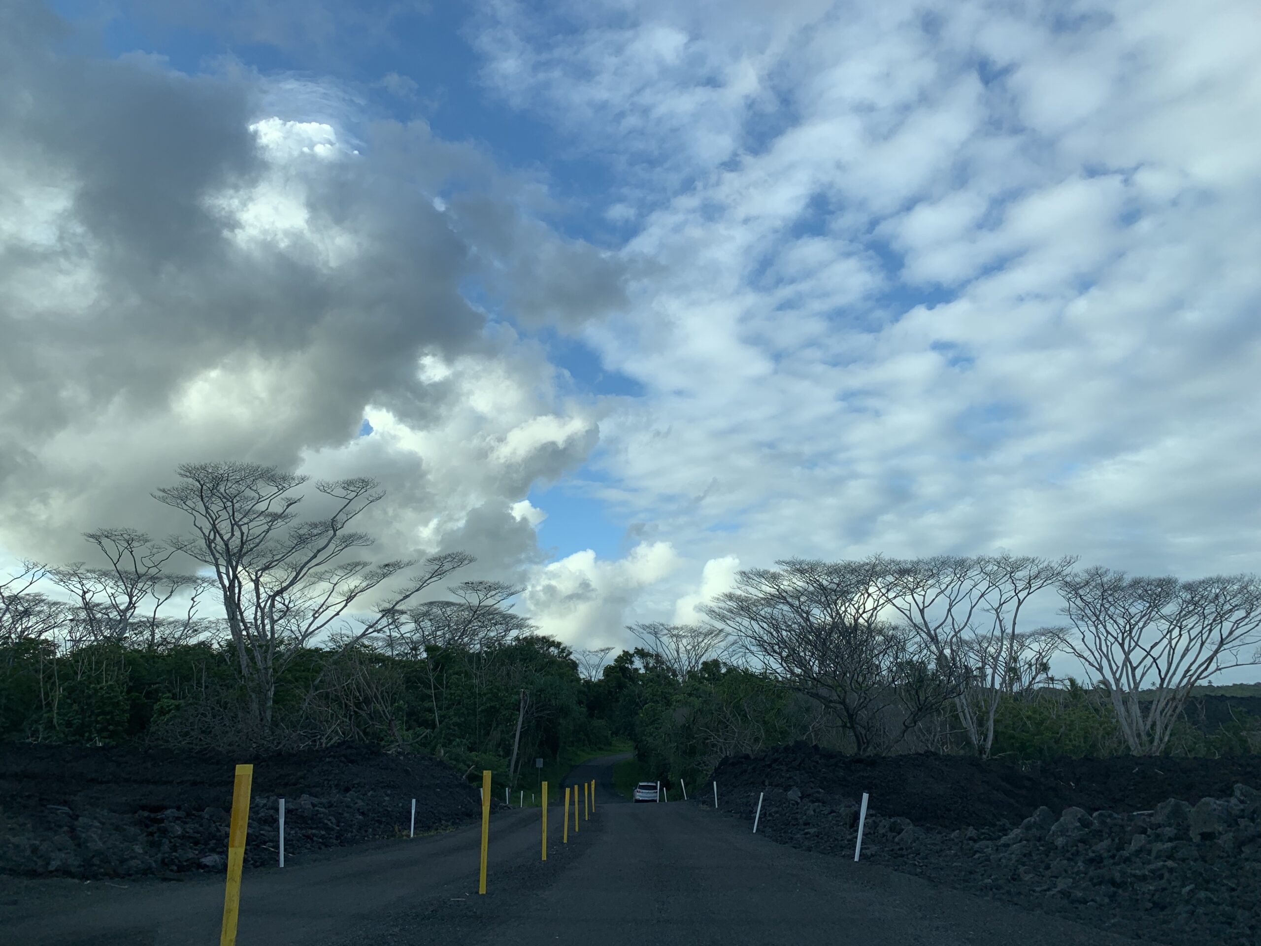 용암이 흘러서 바다로 가면서 길을 덮었다.